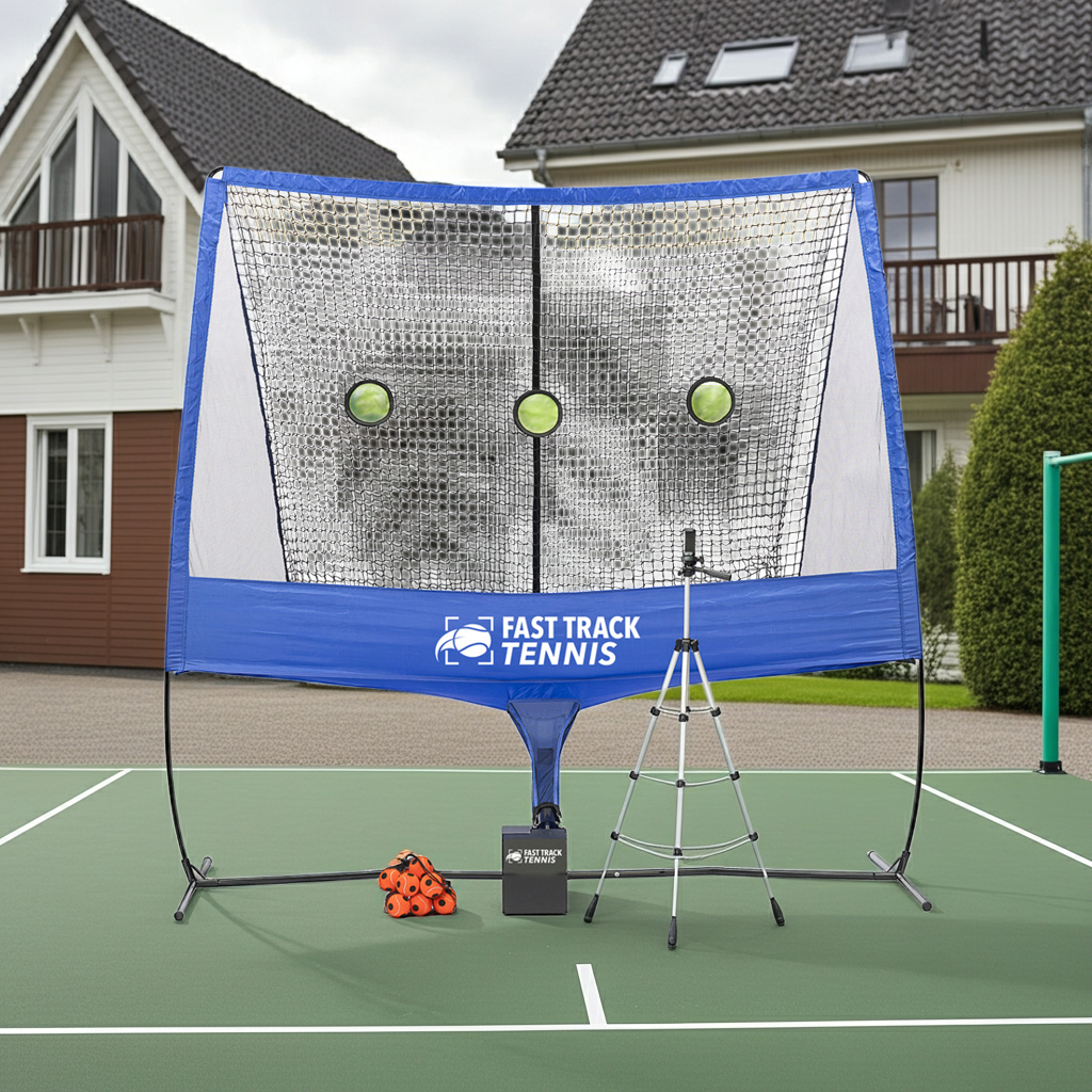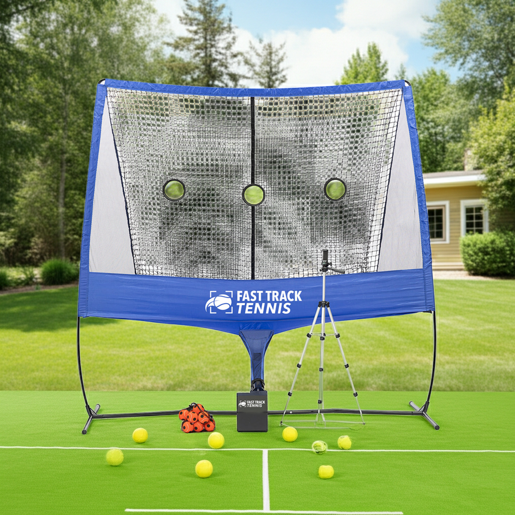 Fast Track Tennis’ patented Feedback System is a portable solo tennis simulator that sets up ANYTIME ANYWHERE, indoors or out, in any small area for live ball hitting – no court or practice partner needed. The system includes a net with 3 Velcro targets, a ball feeder, 12 long-lasting (specially marked) practice balls, a smartphone tripod and available smartphone apps. Requiring only 3 to 4 balls during use, this physical and digital innovation is ideal for players of all levels. FITS ALL STANDARD SIZE BALLS.