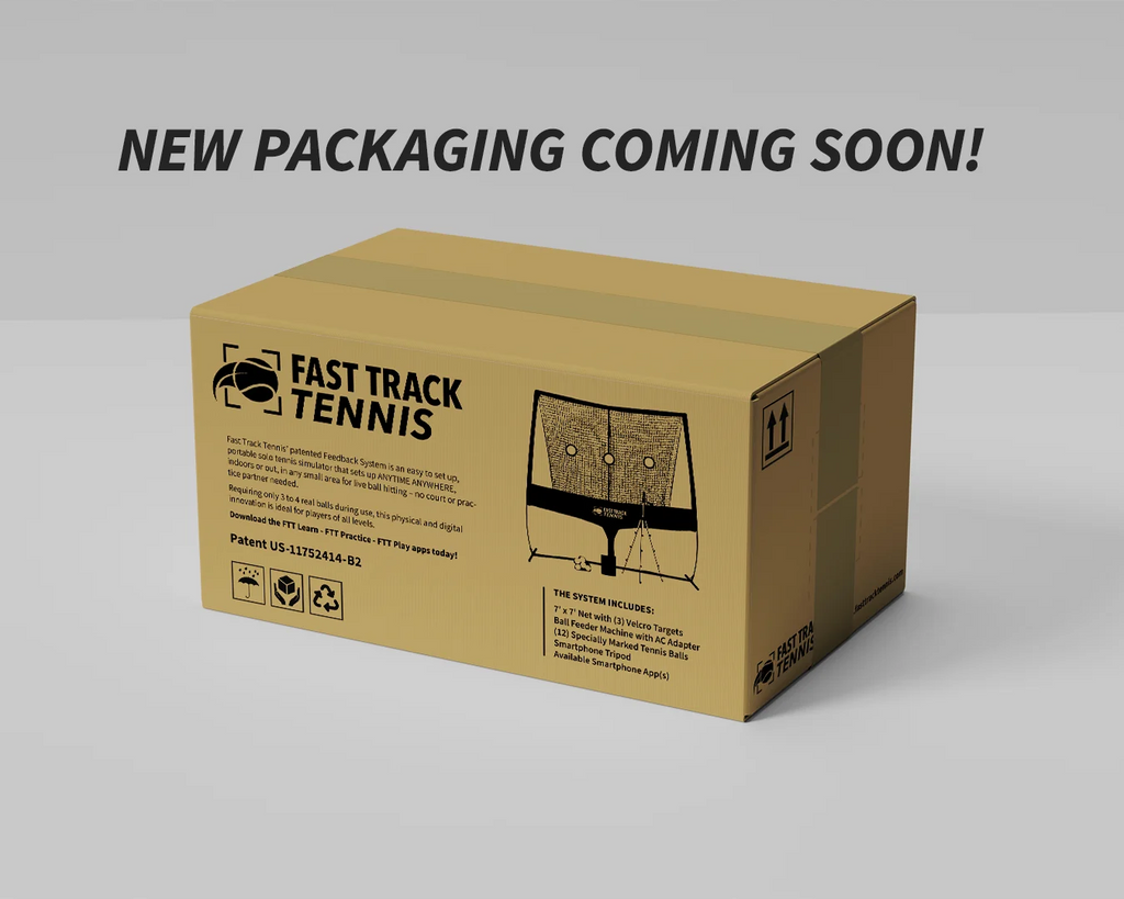 Fast Track Tennis’ patented Feedback System is a portable solo tennis simulator that sets up ANYTIME ANYWHERE, indoors or out, in any small area for live ball hitting – no court or practice partner needed. The system includes a net with 3 Velcro targets, a ball feeder, 12 long-lasting (specially marked) practice balls, a smartphone tripod and available smartphone apps. Requiring only 3 to 4 balls during use, this physical and digital innovation is ideal for players of all levels. FITS ALL STANDARD SIZE BALLS.